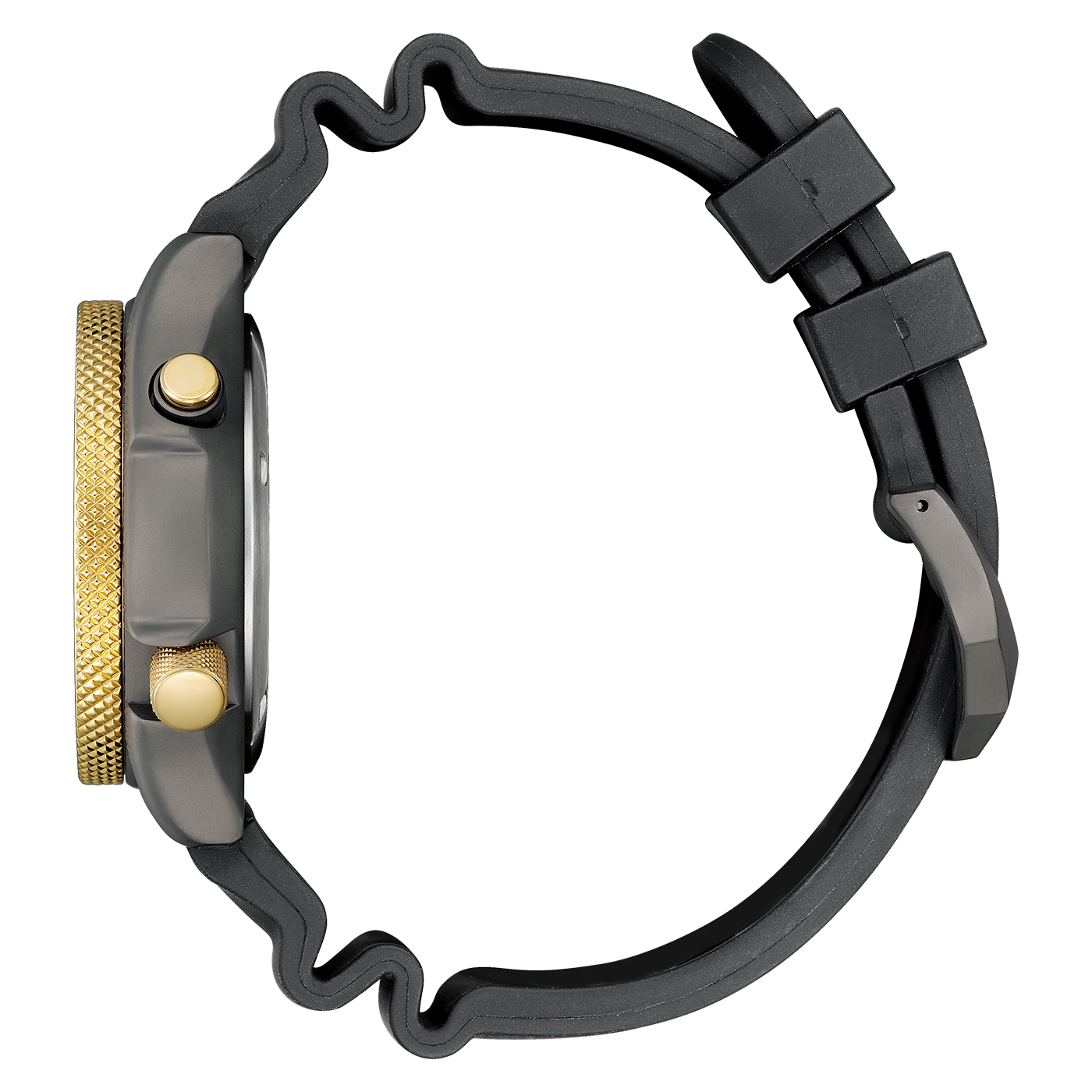 The bracelet is made of BENEBiOLTM*, a plant-based polyurethane. CITIZEN chose BENEBiOL for its wristbands because it is resistant to hydrolysis when it becomes wet and has less impact on the environment.