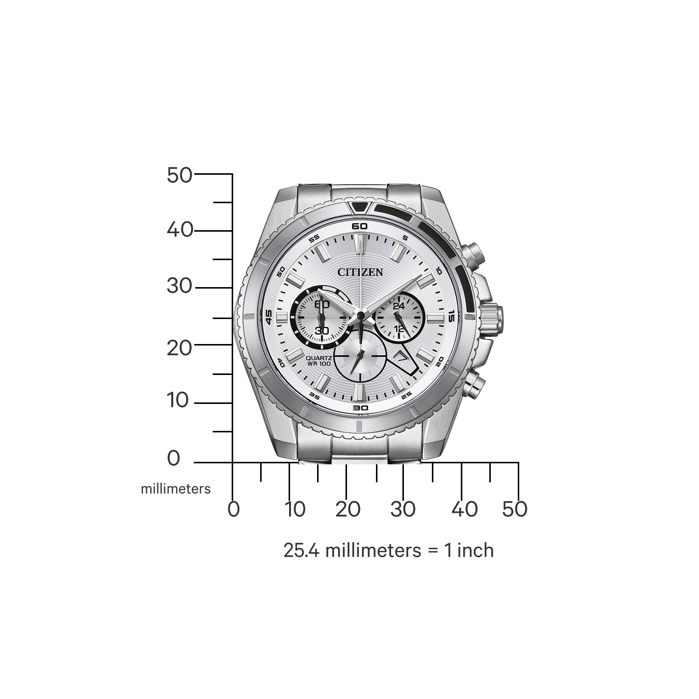 Αθλητικό ρολόι χρονογράφος quartz με κάσα από ανοξείδωτο ατσάλι και λουρί, κρύσταλλο από ορυκτό γυαλί και καντράν σε ασημί απόχρωση. Εξοπλισμένο με caliber 0520, με λειτουργία χρονομέτρου, ένδειξη 24 ωρών, ημερομηνία και αντοχή στο νερό έως 10 bar. Διάμετρος κάσας: 44 mm, πλάτος μπρασελέ: 22 mm.